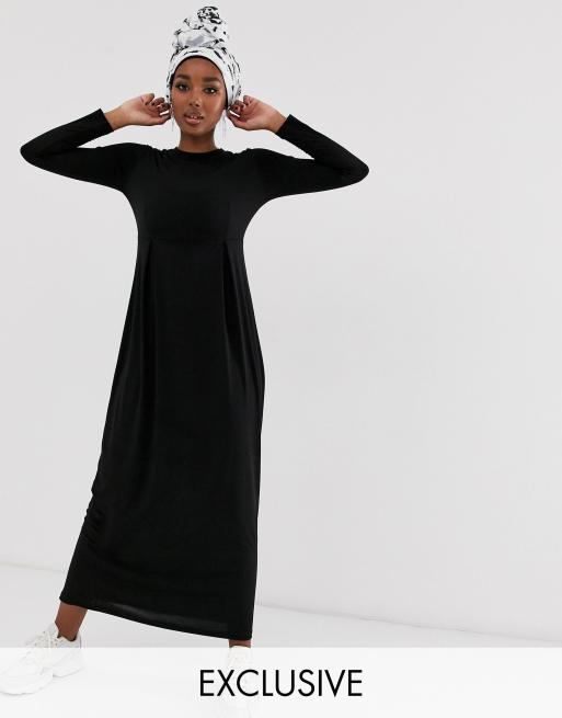 Verona Jersey Lange Jurk Met Lange Mouwen En Plooien In Zwart Asos