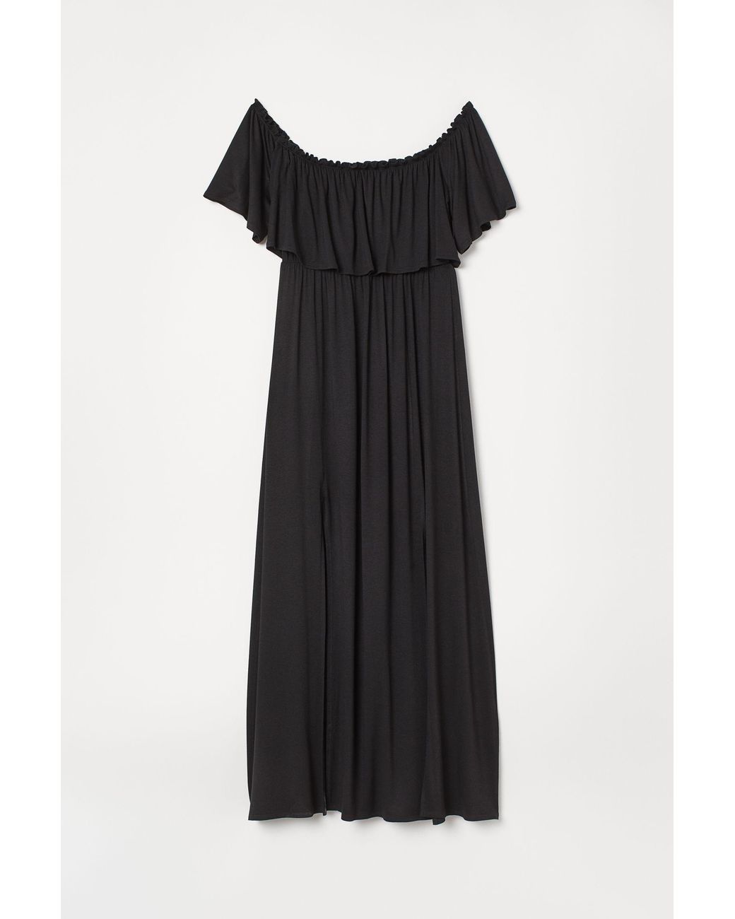 H M Synthetic H M Maxi Dress With A Flounce In Black Lyst