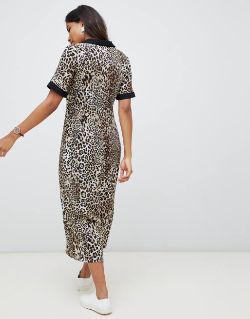 Asos Design Lange Jurk Met Kraag En Luipaardprint Asos