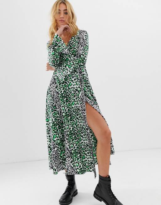 Asos Design Lange Jurk Met Overslag En Neon Luipaardprint Asos