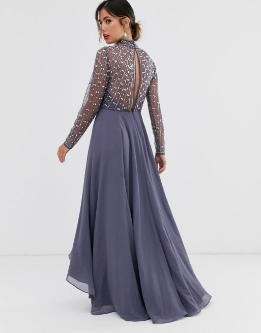 Asos Design Lange Jurk Met Verticaal Versierd Lijfje En Rok Met