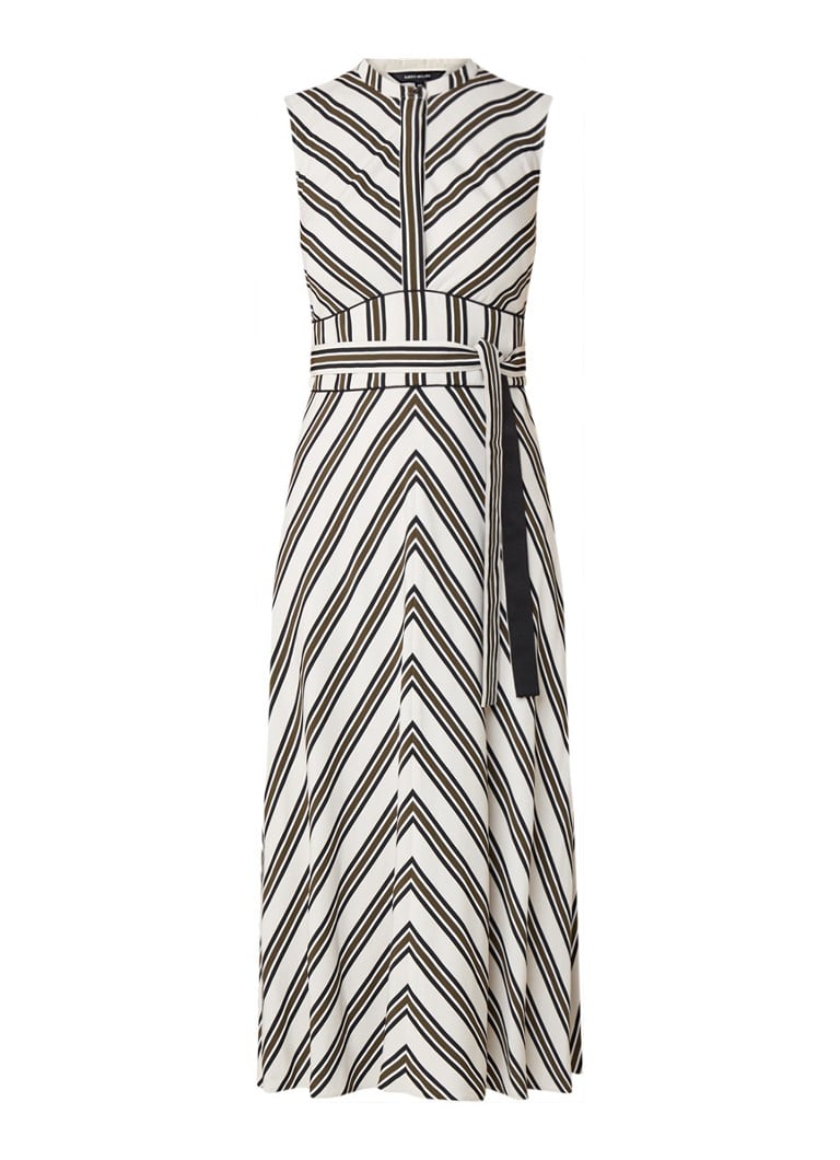 Karen Millen Mouwloze Maxi Jurk Met Streepdessin En Strikceintuur