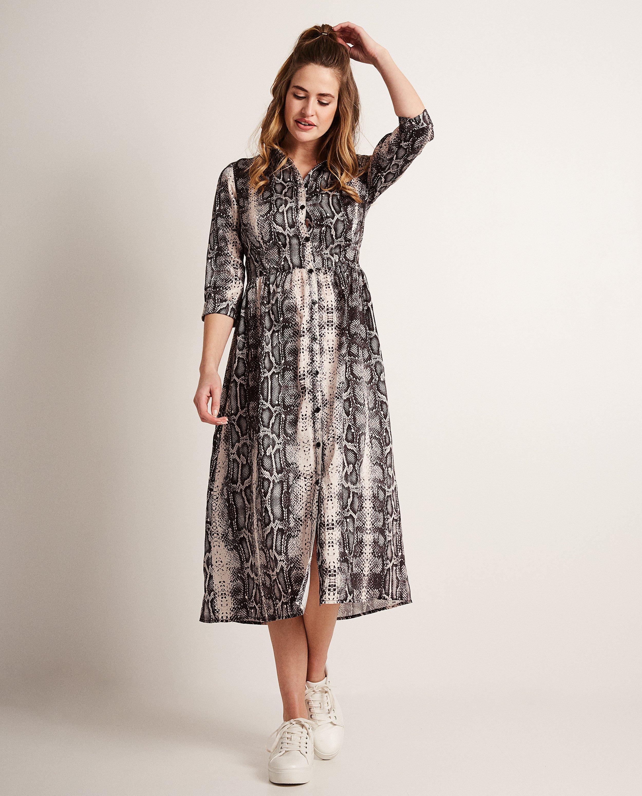 Maxi Jurk Met Slangenprint En Hemdkraagje Jbc Belgie