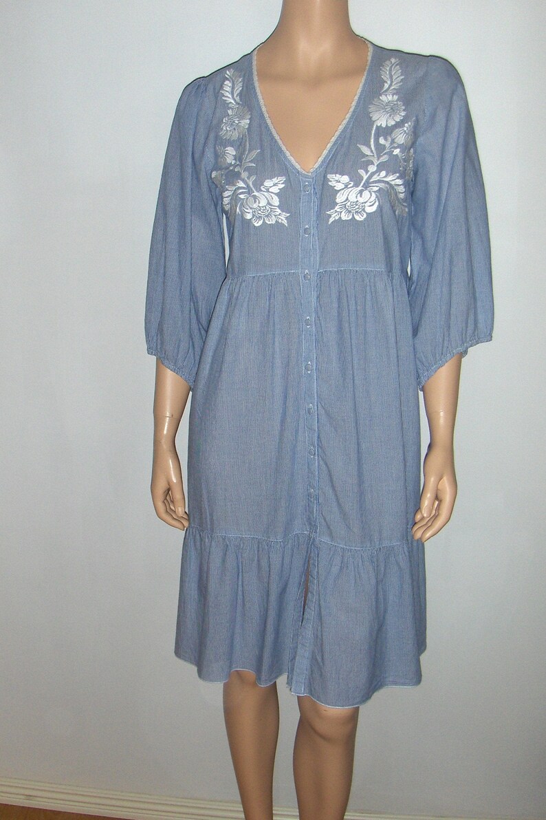 Vintage Blauw En Wit Gestreepte Katoenen Jurk Met 3 4 Lange Etsy