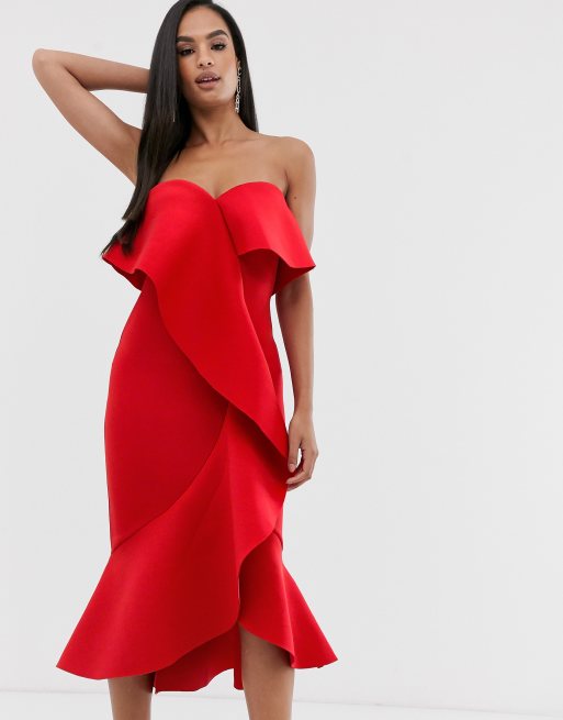 The8e5a Lavish Alice Exaggerated Frill Detail Scuba Midi Dress In