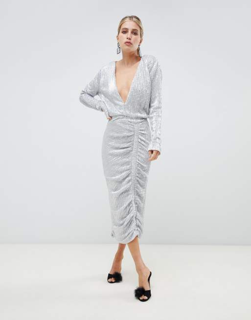 Lavish Alice Midi Jurk Met Lovertjes In Glanzend Zilver Asos