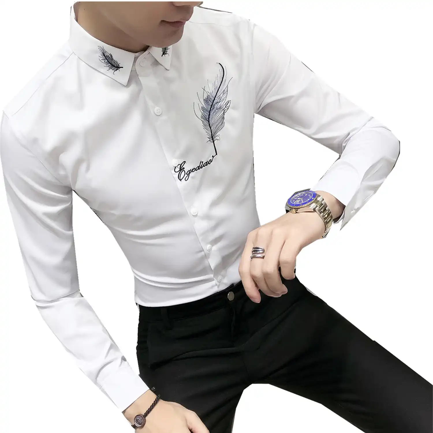 Goedkope T Vogel Merk 2017 Mannen Shirt Zwart Wit Jurk Shirt Lange