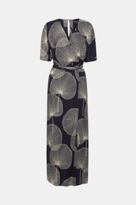 Esprit Maxi Dress In Jacquard Fabric With A Wrap Over Effect At