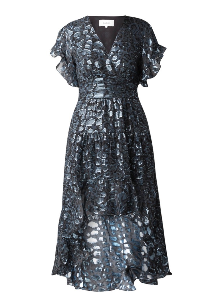 Ba Sh Grace Maxi Jurk In Zijdeblend Met Luipaarddessin En Volant