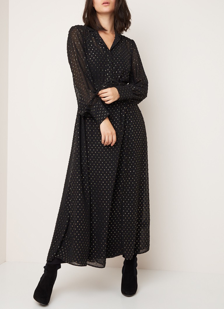 Expresso Norence Maxi Jurk Met Stippendessin En Lurex Zwart De