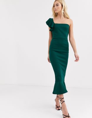 True Violet Asymmetrische Midi Jurk Met Ruches En Peplum Groen