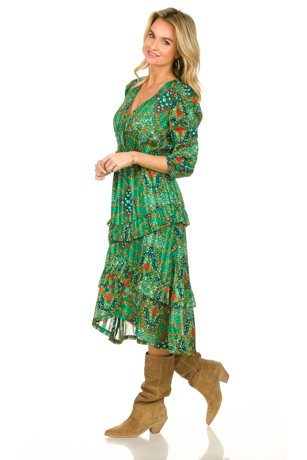 Groene Midi Jurk Lange Mouw Dames Jurken Met Lange Mouw Kleding