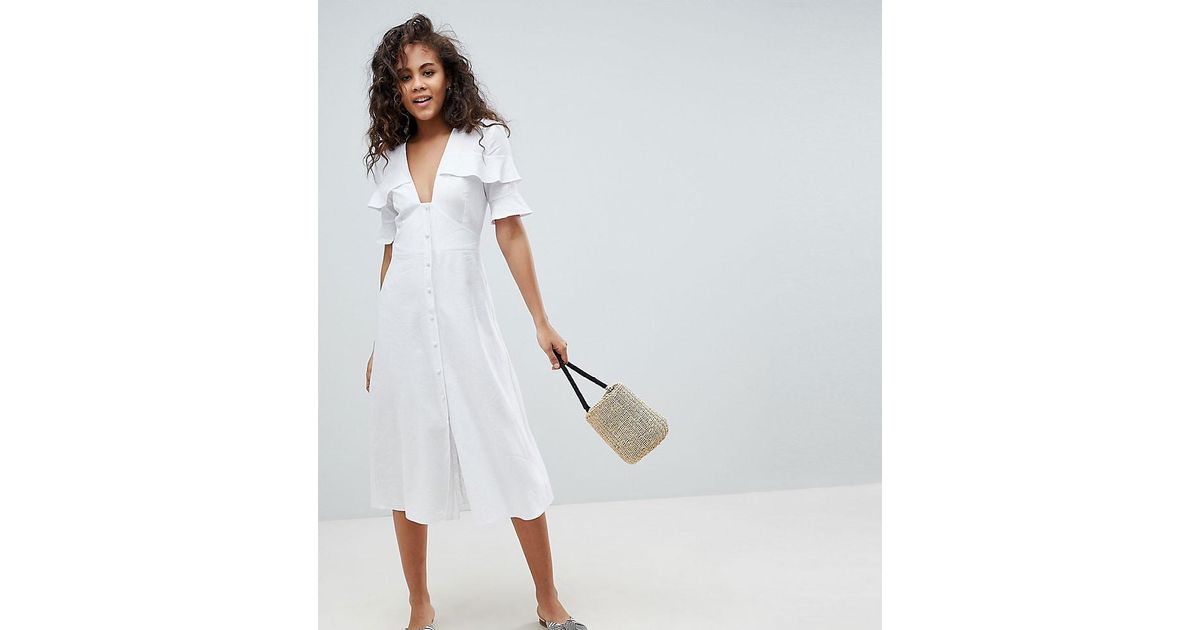 Asos Linnen Tall Linnen Casual Midi Jurk Met Knopen In Het Wit