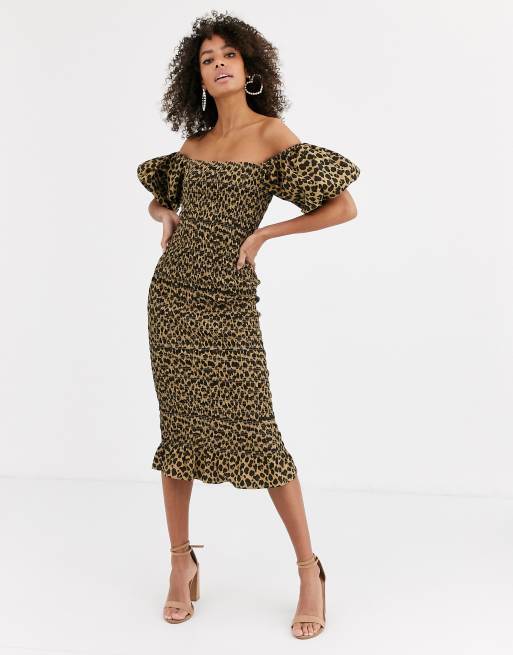 Set Midi Jurk Met Luipaardprint En Lage Col Bruin De Bijenkorf