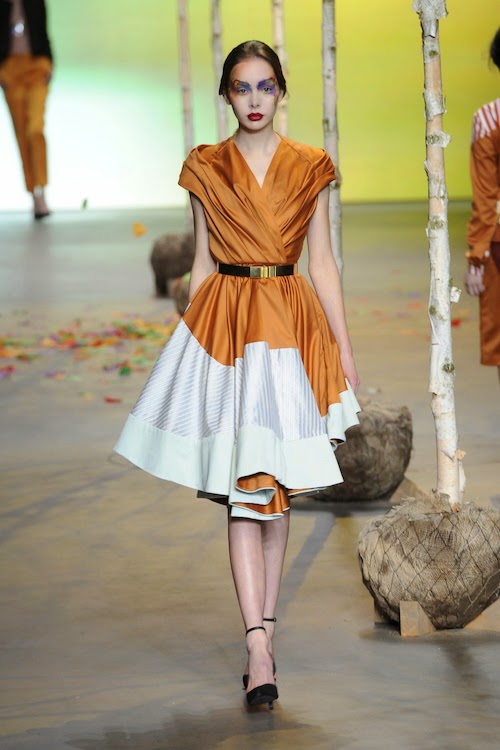 Ze droeg een nieuwe jurk van natan en een vilten flaphoed van fabienne delvigne. Zij droeg een driekwart jurk van mousseline zijde met een abstracte rood blauw en geel print. Natan mode heeft een persoonlijke stijl van eigentijdse puurheid een bron van vrouwelijkheid en verfijning gecreeerd. Koningin maxima droeg een custom made ontwerp van natan.