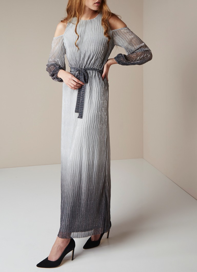Warehouse Cold Shoulder Jurk Met Ombre En Glans Zilver De