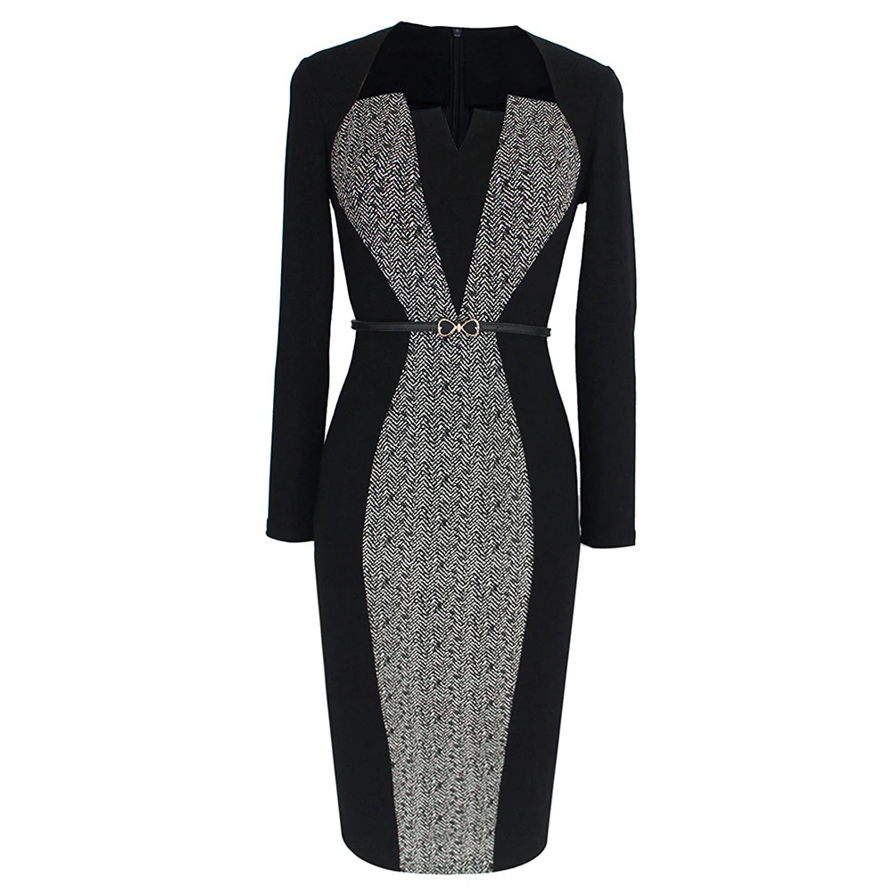 Womens Elegant Optische Illusie Patchwork Contrast Slim Casual