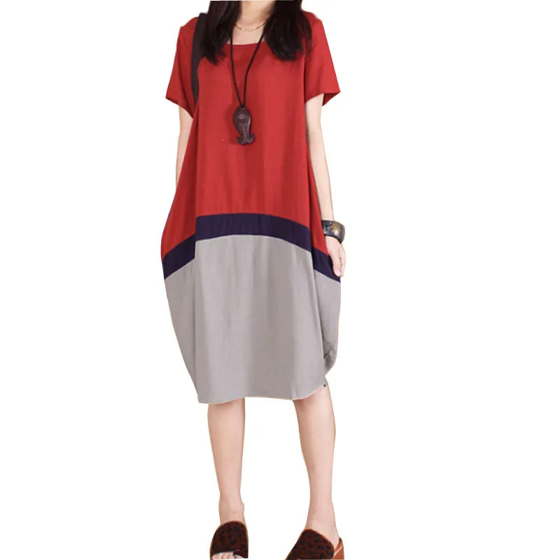 Vrouwen Korte Mouw Kleur Spliced Katoen En Linnen Oversized Shirt