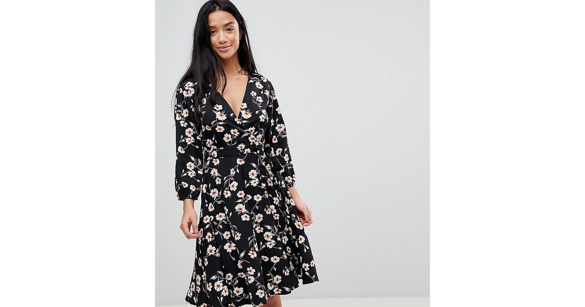 Yumi Petite Overslagjurk Met Bloemenprint In Het Zwart Lyst