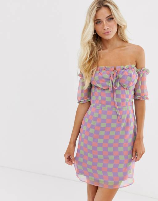 Glamorous Mini Jurk Met Pastelkleurige Ruitenprint Asos