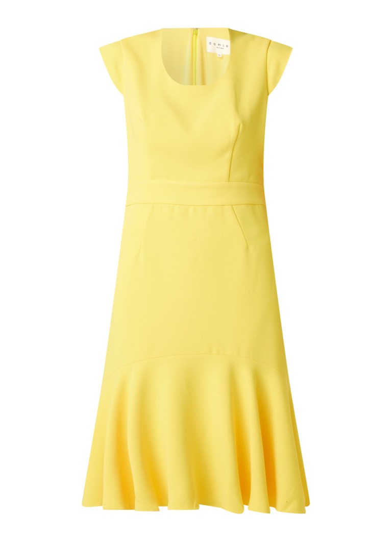 Damsel In A Dress Abree Midi Jurk Met Peplum Geel De Bijenkorf