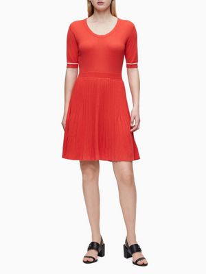 Katoenen Zijden Plisse Gebreide Jurk Calvin Klein K20k201823xlz