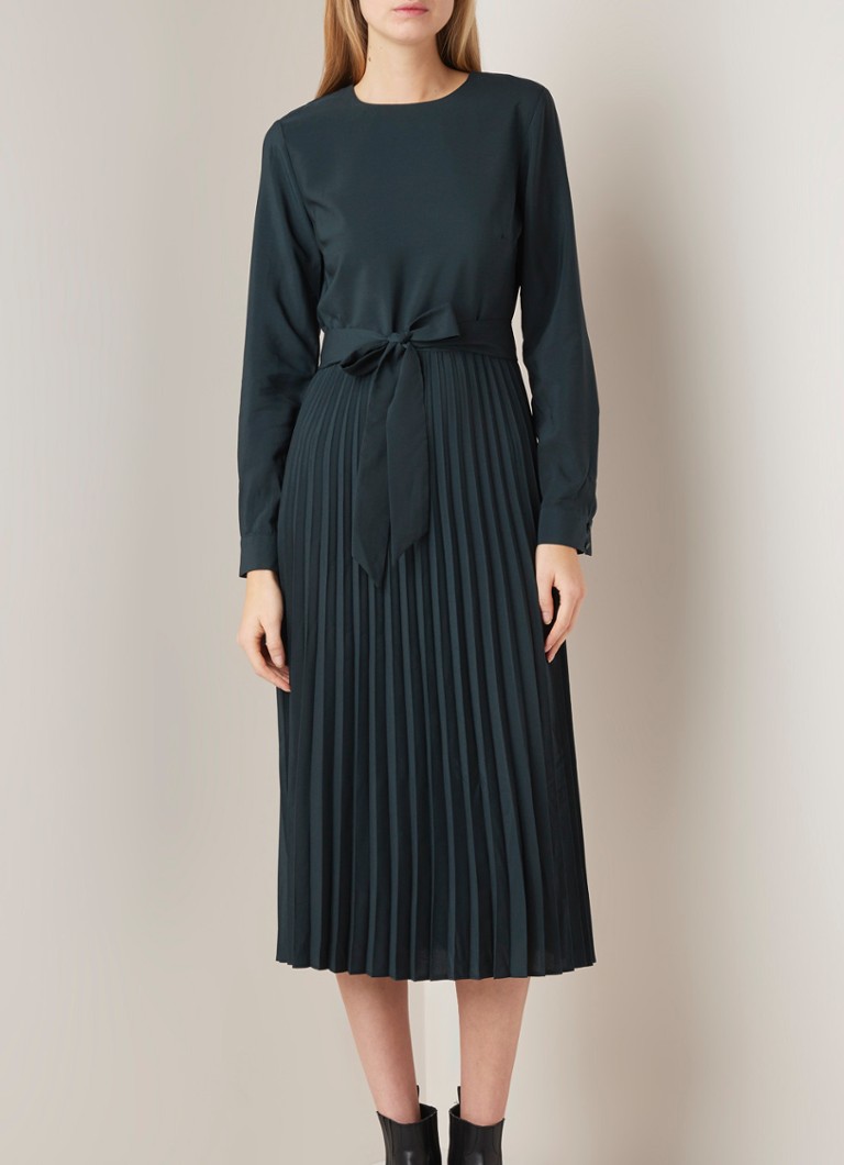 Warehouse Midi Jurk Met Ronde Hals En Plisse Donkergroen De