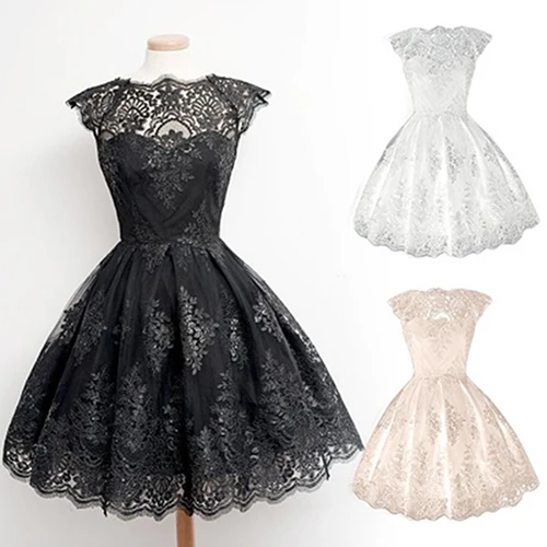 Meisjes Retro Gothic Hollow Waisted Cocktail Party Prom Flare Poef