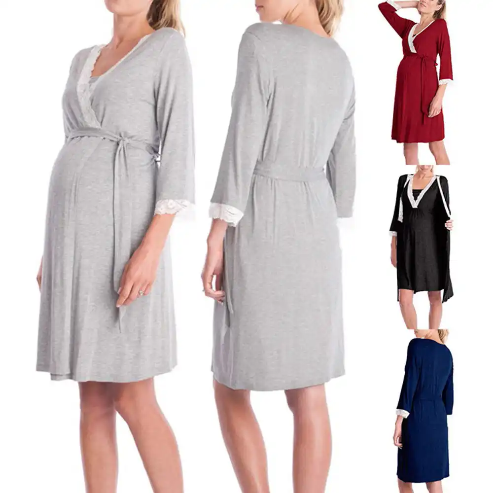 2019 Lovely Cartoon Print Maternity Nursing Nightgown Summer Loose