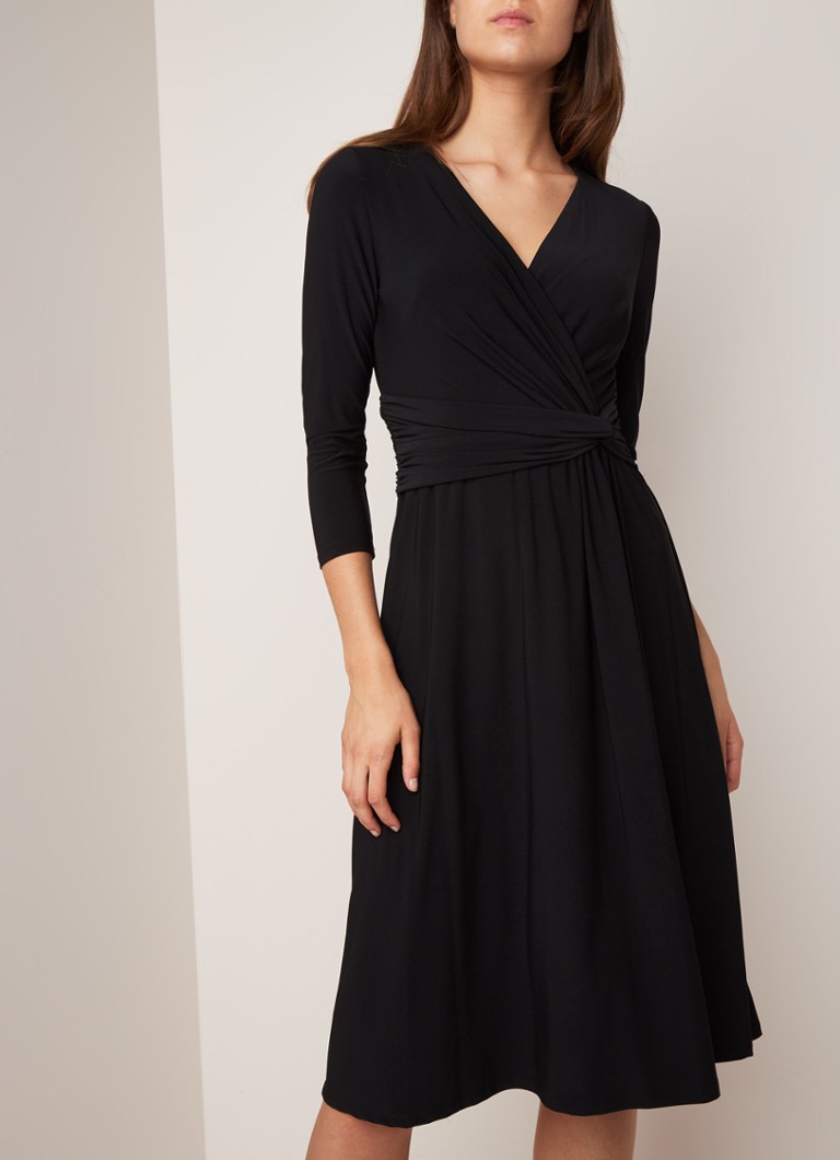 Ralph Lauren Midi Jurk Met Draperie En V Hals Zwart De Bijenkorf