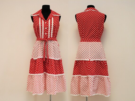 Vintage Jurk Rood Witte Stippen Jurk Rode En Witte Polka Dot Etsy
