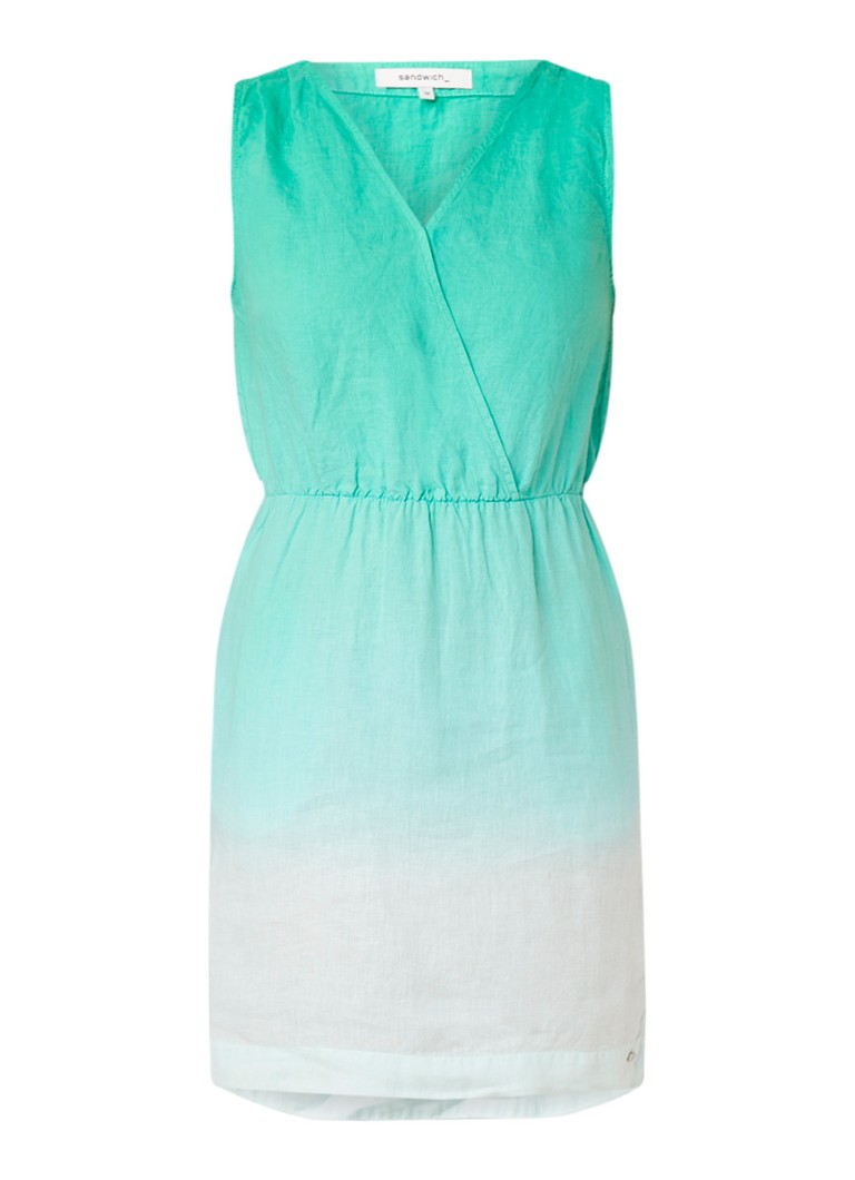 Sandwich Midi Jurk Van Linnen Met Ombre Kleurverloop Groen De