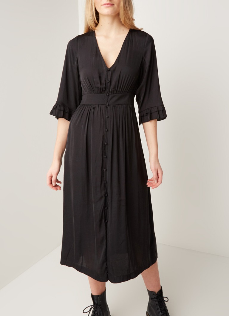 Scotch Soda Midi Jurk Met V Hals En Ruches Zwart De Bijenkorf