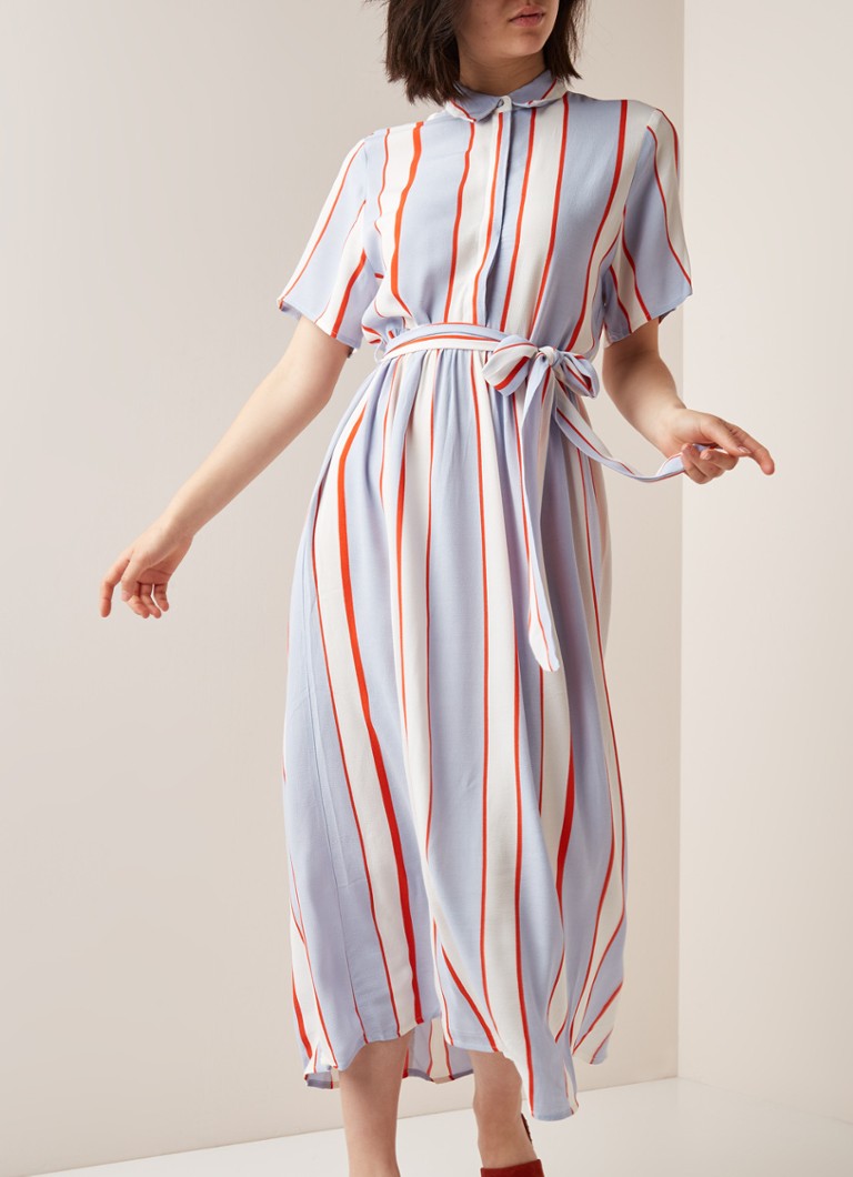 Selected Femme Rory Midi Jurk Met Streepdessin En Striksluiting