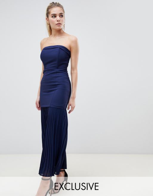 Dark Pink Strakke Lange Bandeau Jurk Met Geplooide Rand Asos