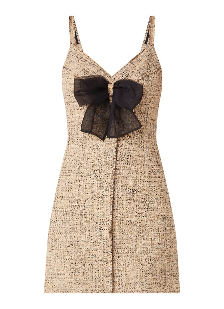 Sandro Mini Jurk Van Tweed Met Strik Donkerbeige De Bijenkorf