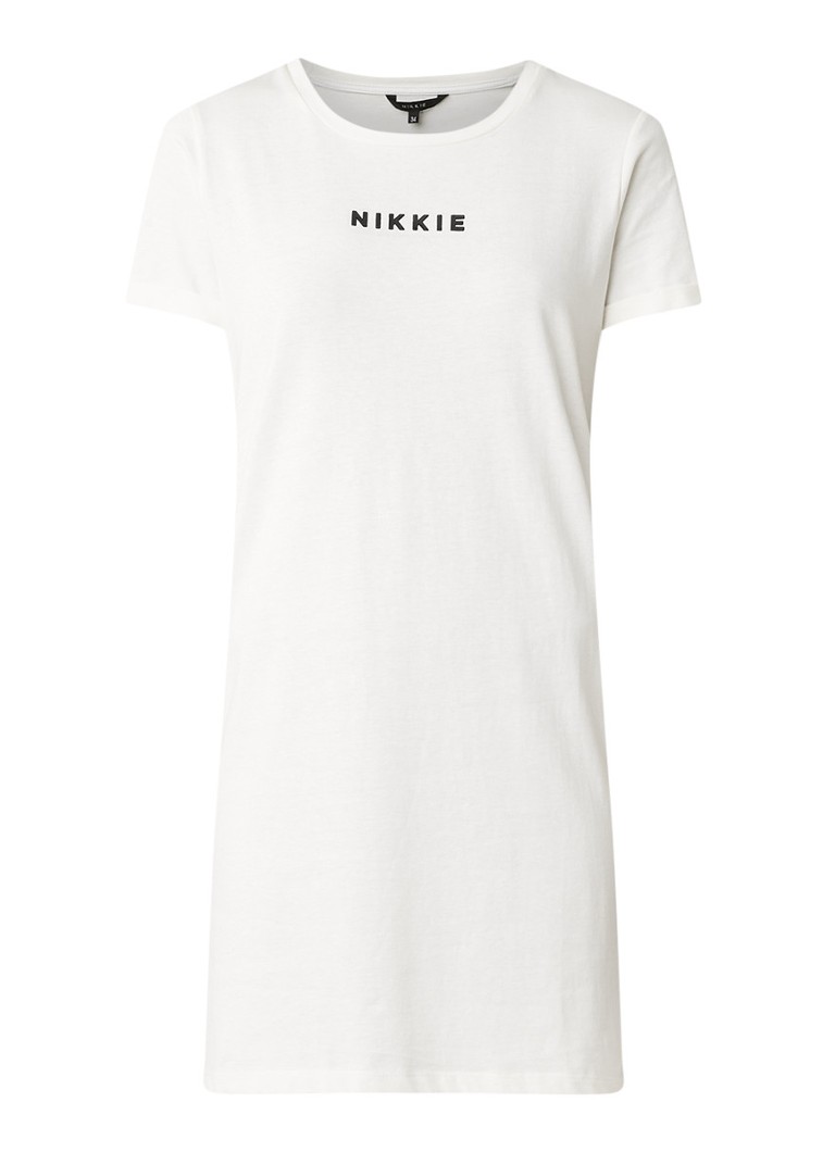 Nikkie Nikkie Loose Fit T Shirt Jurk Met Logoprint Gebroken Wit
