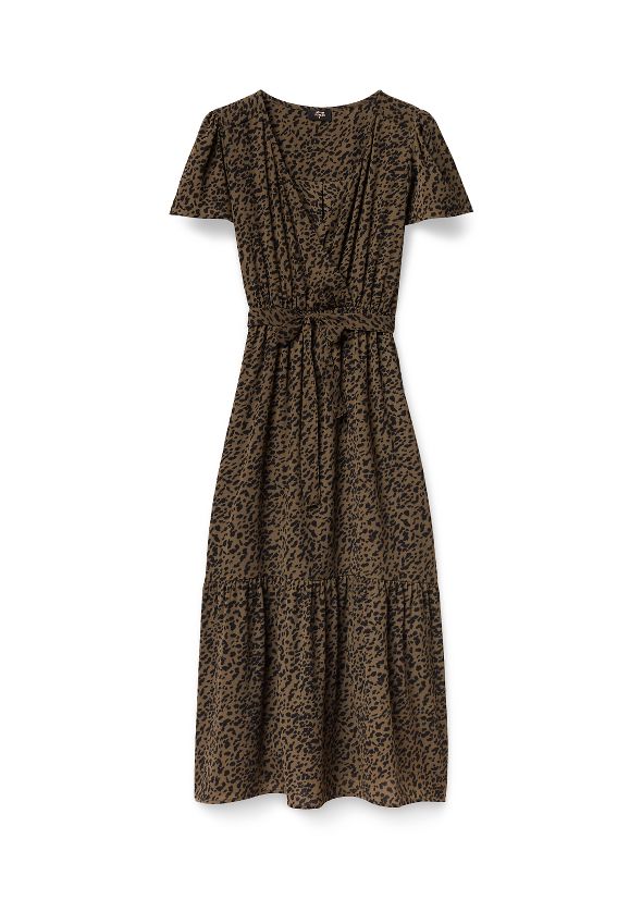 Mes Demoiselles Sting Panterprint Midi Jurk Trenchcoat Bruin