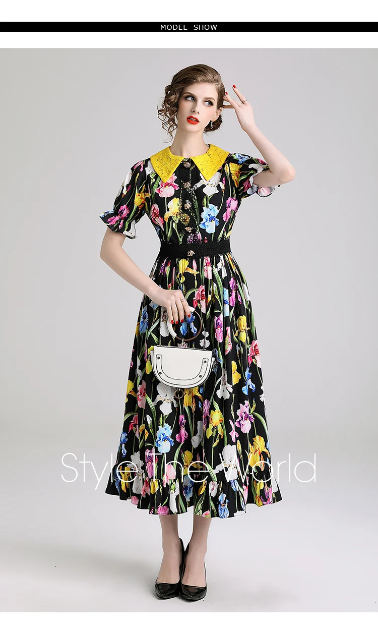 Tulips Print Floral Long Dress 2019 Summer Women Ruffles Short