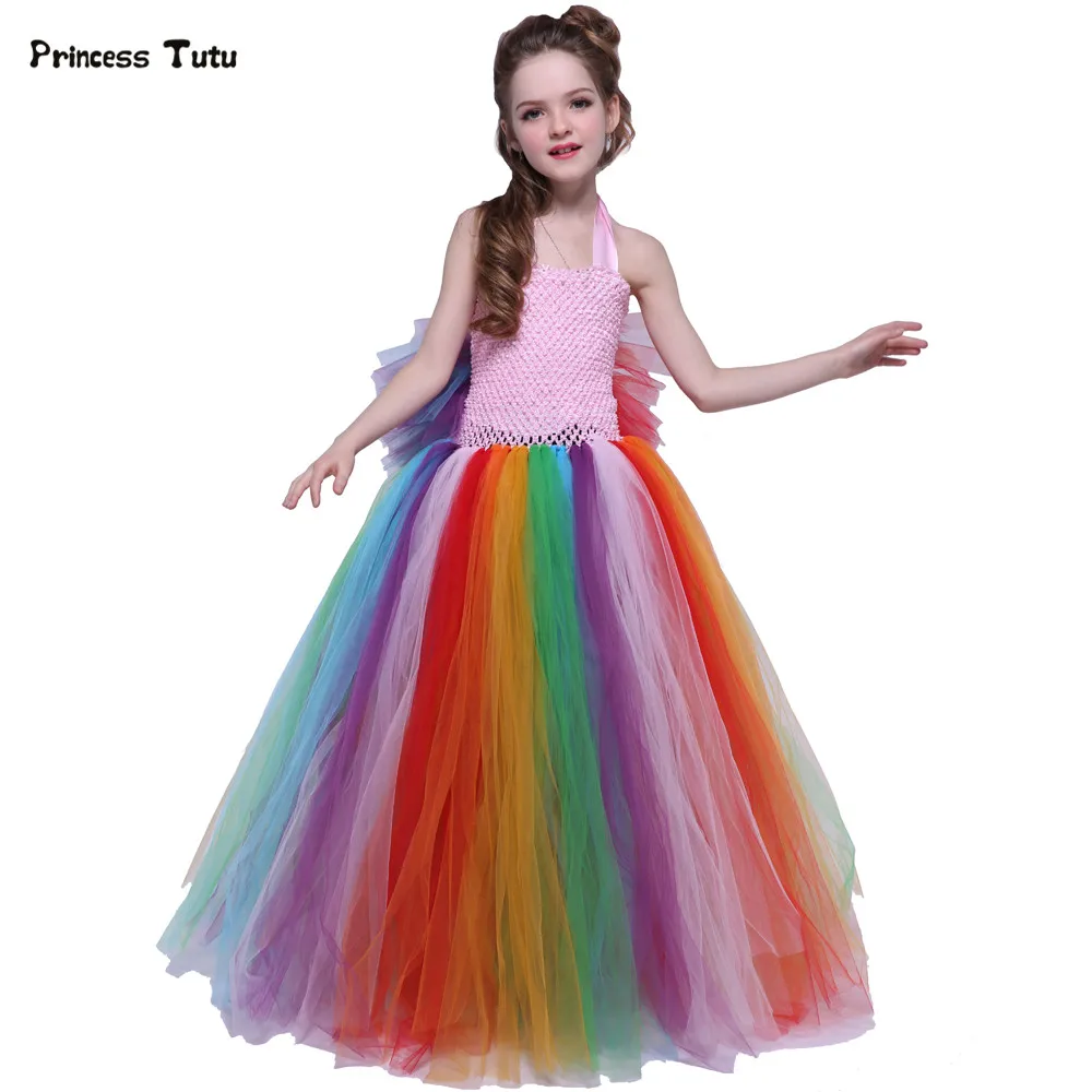 Kleurrijke Regenboog Tutu Jurk Meisjes Tule Birthday Party Prinses