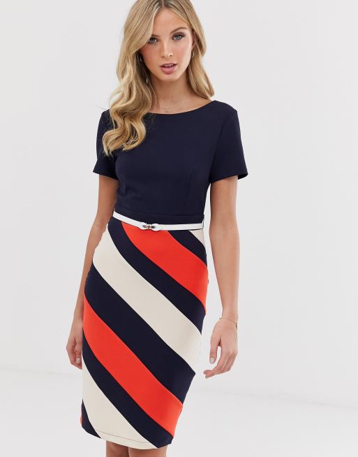 The7f61 Paper Dolls Halflange 2 In 1 Jurk Met Gestreepte Kokerrok