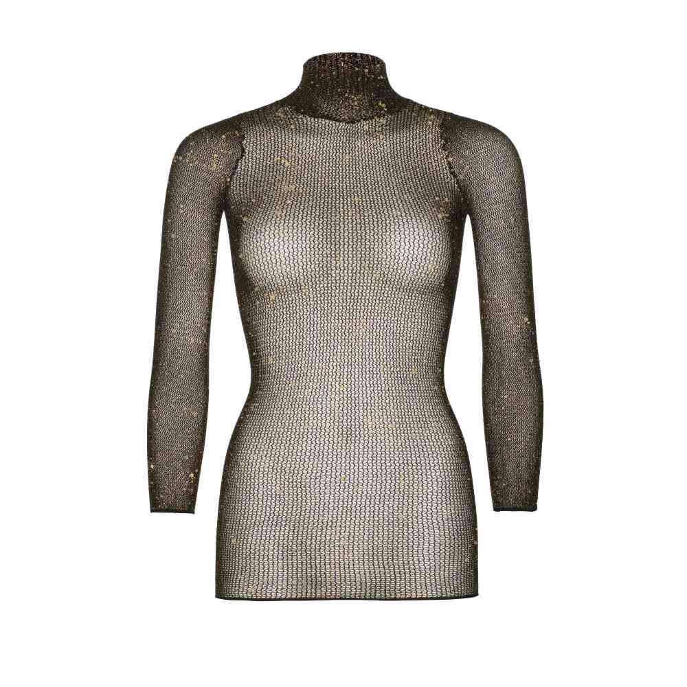 Leg Avenue Lurex Visnet Jurk Met Lange Mouwen Zwart Goud One