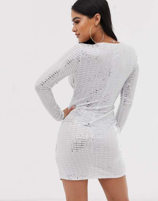 Flounce London Petite Metallic Mini Jurk Met Wetlook In Wit En