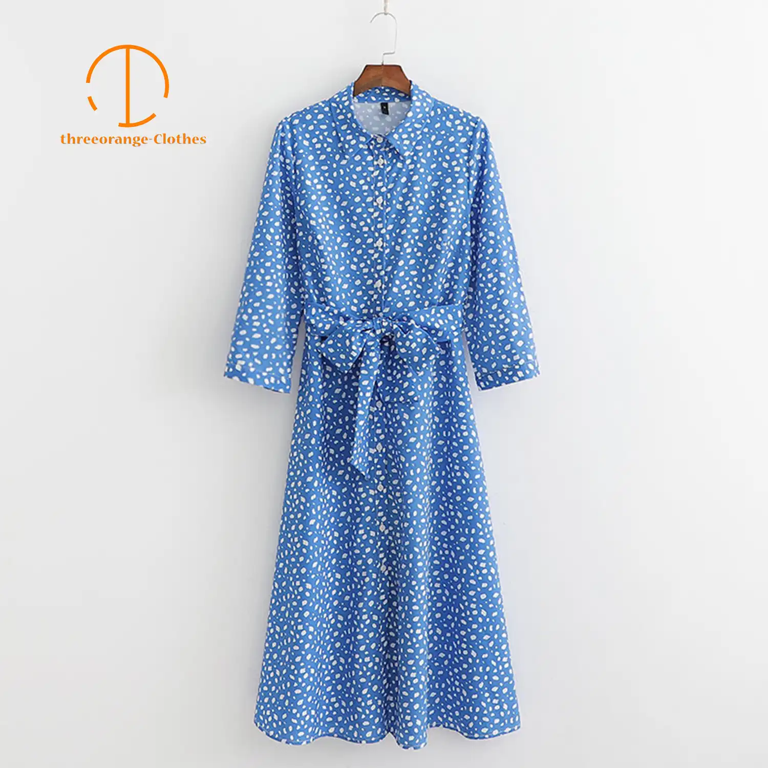 Zomer Jurk Vrouwen Wit Verspreide Deeltje Print Kraag Split
