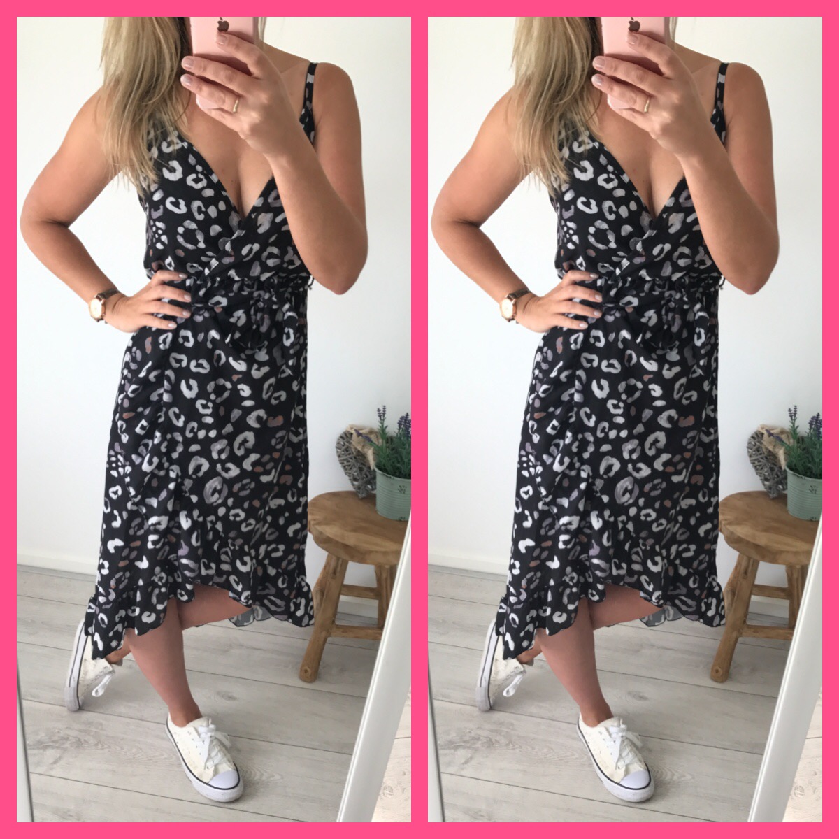 Midi Jurk Overslag Panter Zwart Wit Shemixxed