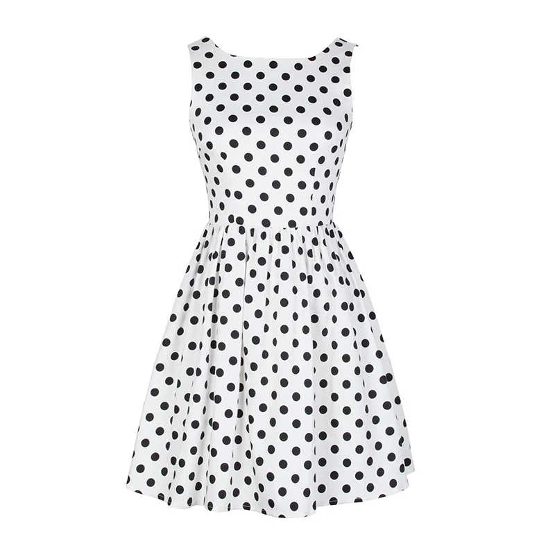 Delicate Witte Jurk Met Zwarte Stippen Plus Size Flare Zonnejurk