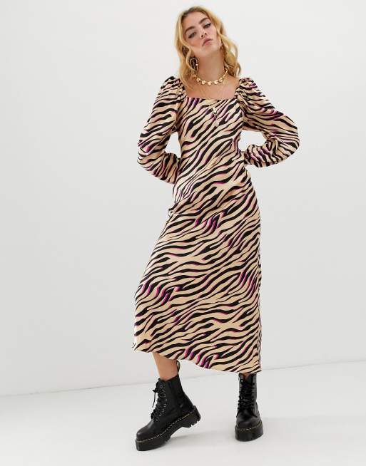 Vila Midi Jurk Met Zebraprint En Ruches Aan De Rok Multi