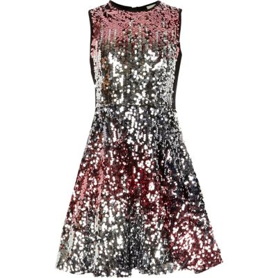 River Island Roze En Zilverkleurige Ombre Jurk Met Lovertjes Voor