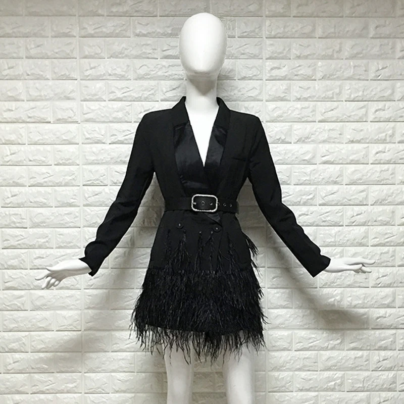 2019 Nieuwe Vrouwen Gemerceriseerde Zwarte Blazer Jurken Mode V