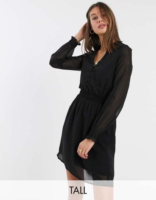 Vero Moda Tall Chiffon Jurk Met Gesmokte Taille In Zwart Asos